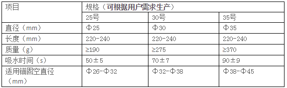 2.1 參考標準 鐵道部TB/T2093-2002《吸水式錨固包技術條件》。